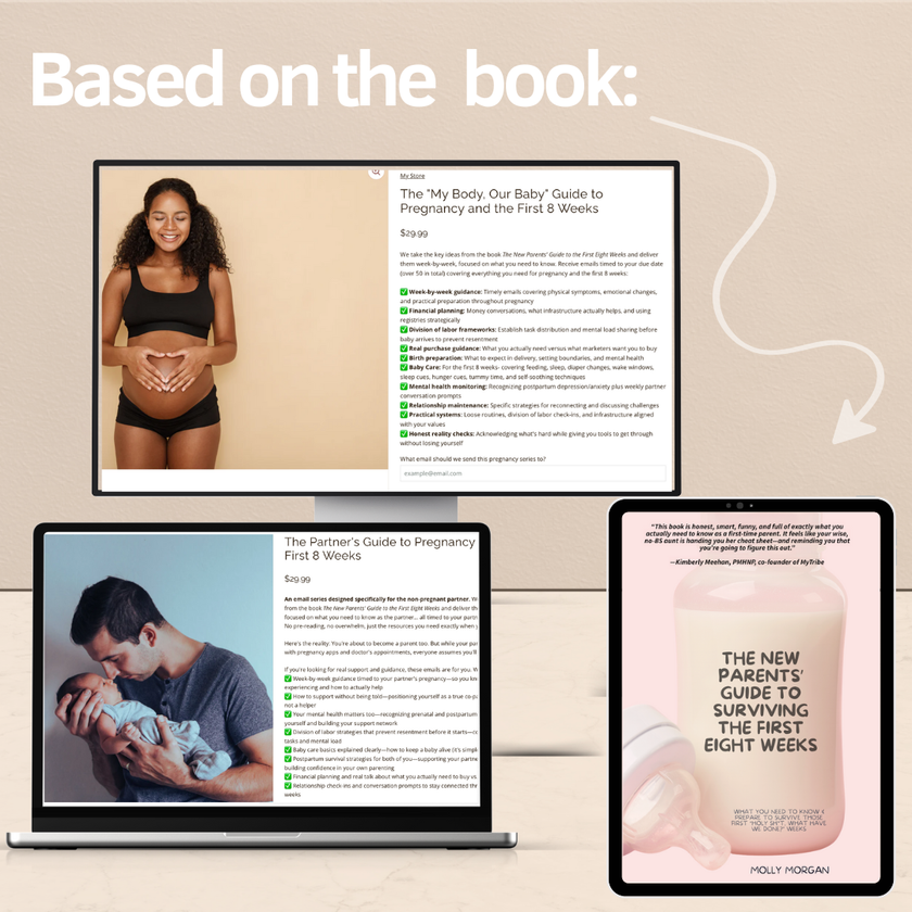 How we do that: By joining our pregnancy or partner series, you'll get 50+ resources for your (or your partner's) pregnancy and postpartum journey—everything you actually need to know, delivered when you need to know it.